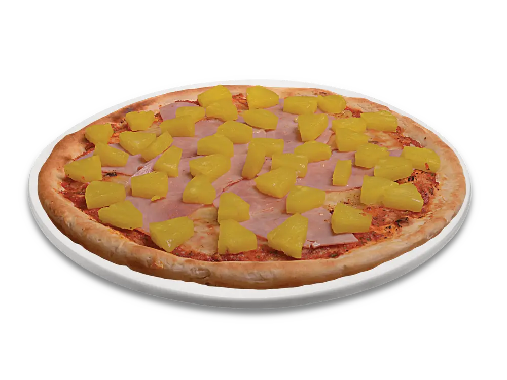 Frischer Teig, Tomatensauce, echter Käse, Kochschinken(Pute), Ananas